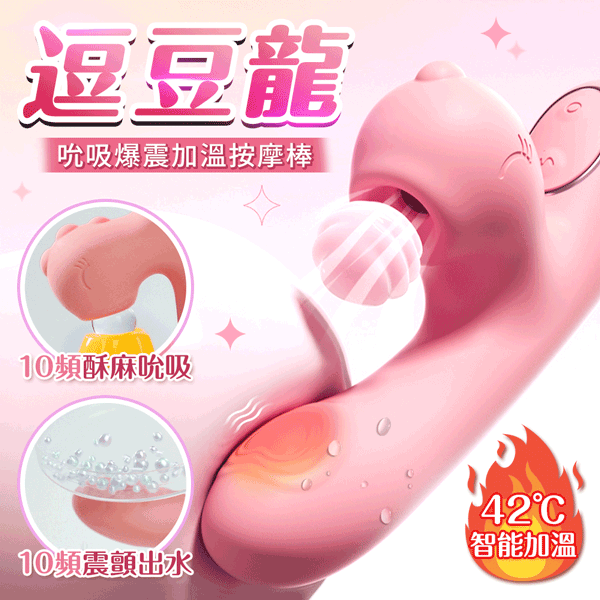 品名:謎姬|逗豆龍 吸吮震動加溫按摩棒|蜜桃粉